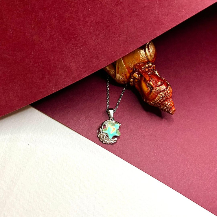 گردنبد استیل مدل ماه و ستاره شب تاب