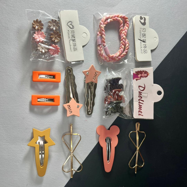یه پک هدیه جذاب و هیجان انگیز پر از ایتم های شانسی و بدون بنجلی، نمونه پک براتون گذاشتم که ببینید کلیت آیتم ها چیه، شامل چند مدل گیره با سایزهای متفاوت، کش مو، کیلیپس و...، سعی کردم تم رنگی رو تا جای ممکن رعایت کنم ولی رنگ ها انتخابی نیست و یه پک ست کامل ارسال میشه خدمتتون، کاملا مقرون به صرفه و بدون بنجلی، حس نوستالژی باز کردن سک سک اونم با ایتم های خوشگل و با کیفیت با یه قیمت عالی ..