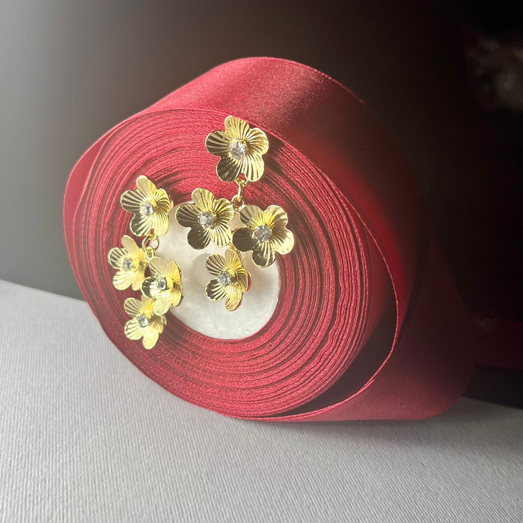 گوشواره میخی و آویزی شیک طرح دسته گل | آبکاری قوی | طلایی