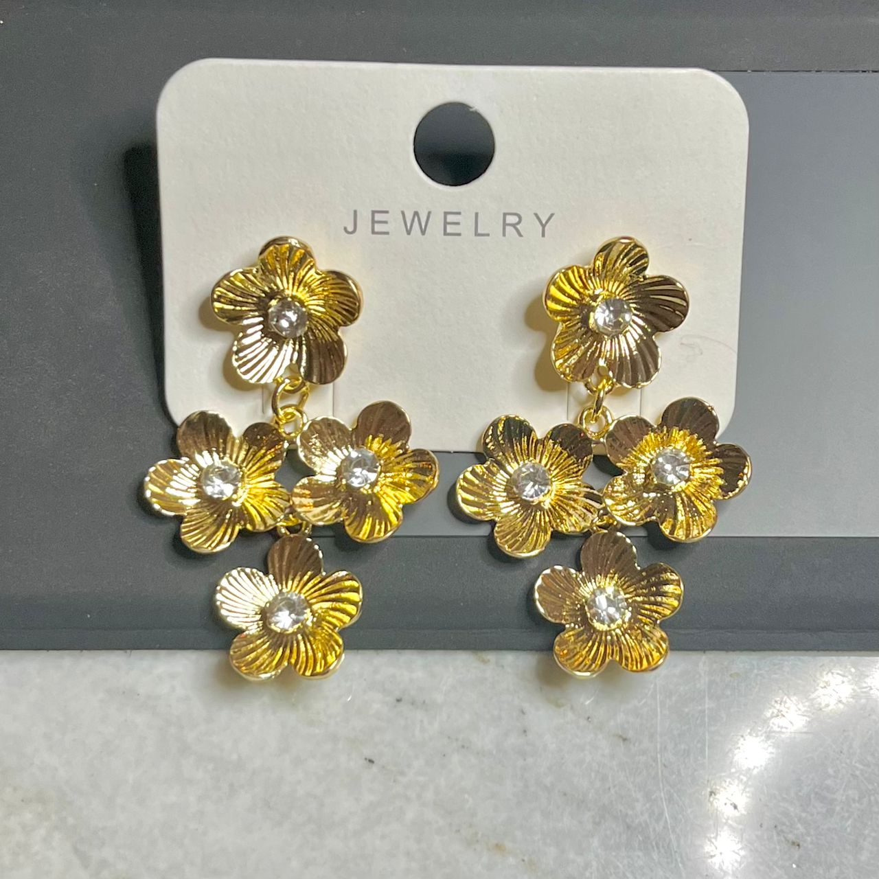 گوشواره میخی و آویزی شیک طرح دسته گل | آبکاری قوی | طلایی