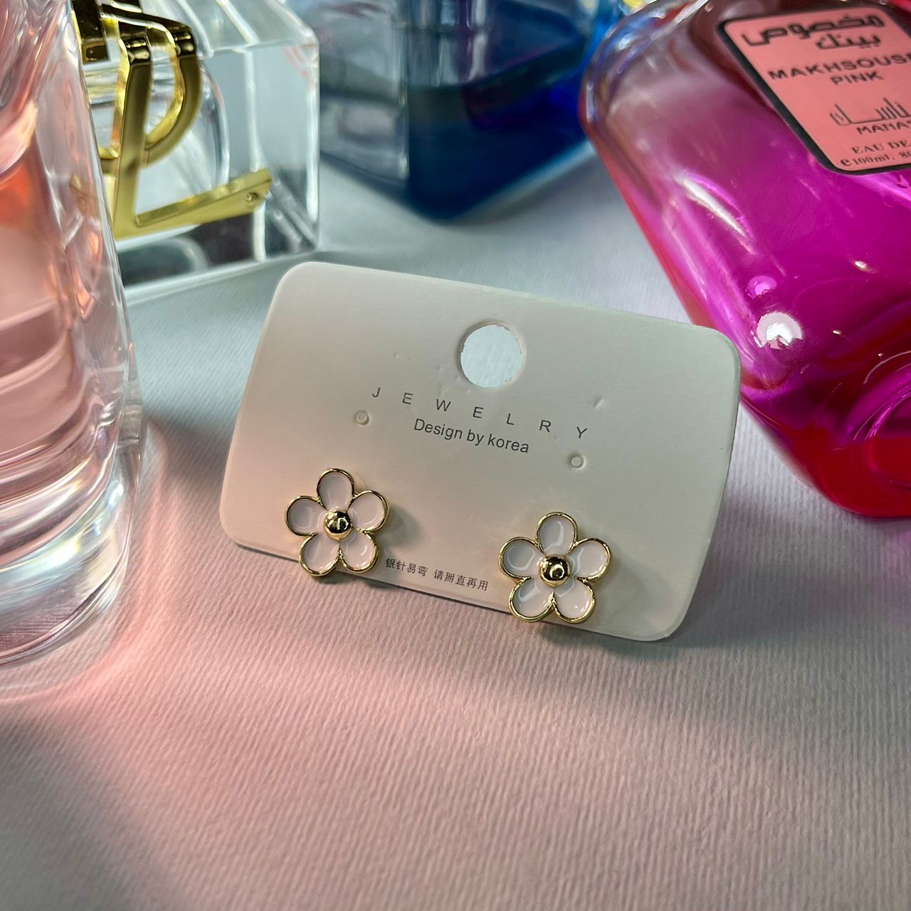 گوشواره میخی مدل گل سفید آبکاری کره ای