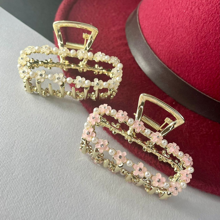 کلیپس اعلا برند نگینی با طرح گل | وارداتی | صورتی و سفید