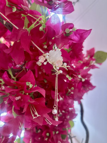 کلیپس اعلا برند نگینی با طرح گل | وارداتی | صورتی و سفید
